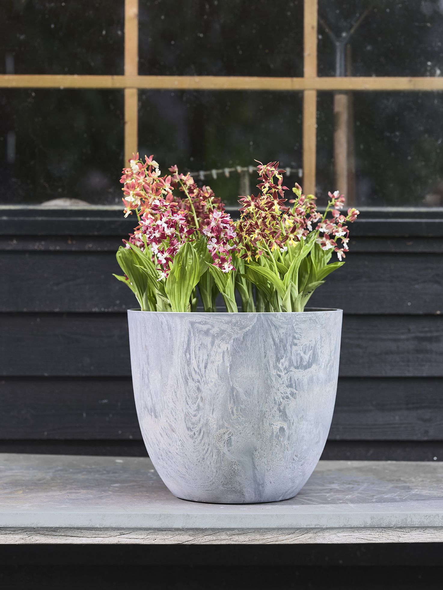 Série Bola z řady Artstone má oblý příjemný vzhled a hodí se do každé zahrady. Jsou dostupné v různých barvách a velikostech. Díky unikátnímu drenážnímu systému a zátce na dně jsou vhodné do exteriéru i interiéru. Květináče Bola jsou lehké a pevné, takže se snadno přepravují, jsou odolné vůči povětrnostním vlivům. Ekologická řada Artstone je vyráběna ze směsi recyklovaného plastu a prášku z přírodního kamene, výrobky jsou 100% recyklovatelné. Díky vzhledu přírodního kamene mají nadčasový design.