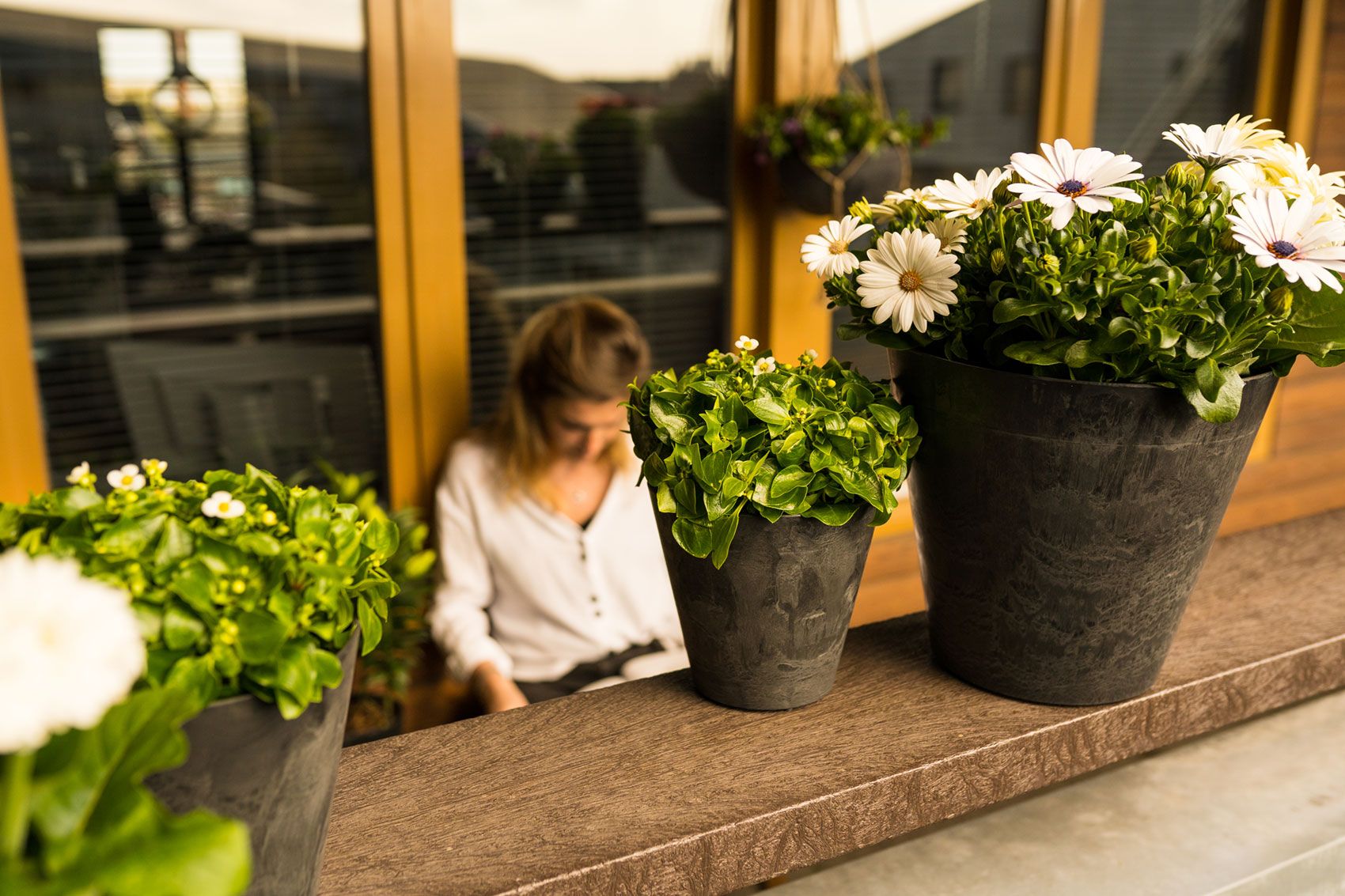 Trendový evergreen Claire z řady Artstone představuje univerzální květináče klasického tvaru. Jsou pevné, ale také lehké, odolné vůči povětrnostním vlivům. Díky skryté drenáži a zátce na dně jsou vhodné pro vnitřní i venkovní použití. Eco-friendly Artstone je vyroben z recyklovaného plastu a prášku z přírodního kamene, jsou 100% recyklovatelné. Jsou dostupné v mnoha tvarech, velikostech a barvách.