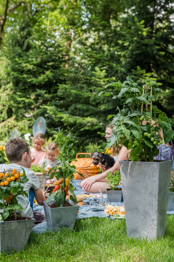 Ella z řady Artstone nabízí moderní ekologické květináče. Vyrobeno ze směsi recyklovaného plastu a prášku z přírodního kamene, jsou 100% recyklovatelné. Květináče mají unikátní drenážní systém. Díky zátce na dně je drenážní systém vhodný pro venkovní i vnitřní použití. Jsou pevné a lehké, odolné proti povětrnostním vlivům. Design hranatých tvarů s betonovým vzhledem se hodí ke každému stylu a ročnímu období.