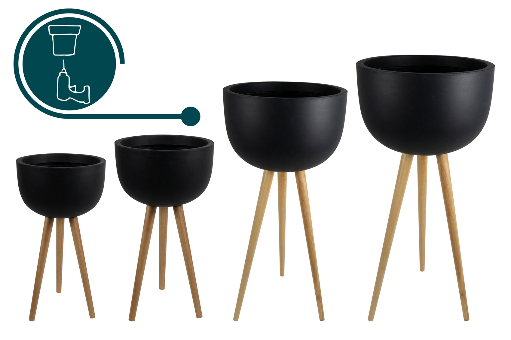 Alina jsou skvělé kousky na verandu nebo pod přístřešek, jsou vyrobeny z pevného kompozitu hlíny a vláken. Mísy jsou dostupné na dřevěných nohách nebo bez nich.Mají dostatek prostoru pro aranže rostlin a kapradin. Mísy na nohách mají různou výšku v rozmezí od 55 do 107 cm.