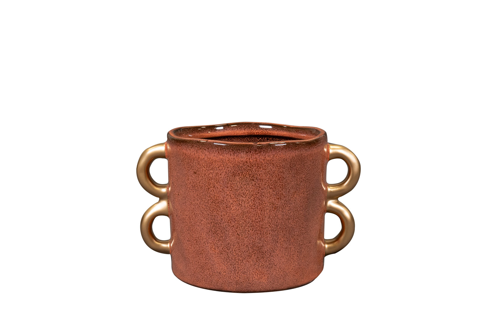 Bianca je moderní květináč s dekorativními zlatými úchyty. Má krásnou reaktivní glazuru a organický tvar. Je ručně vyrobená tradičními metodami, což se odráží v jejím autentickém designu.