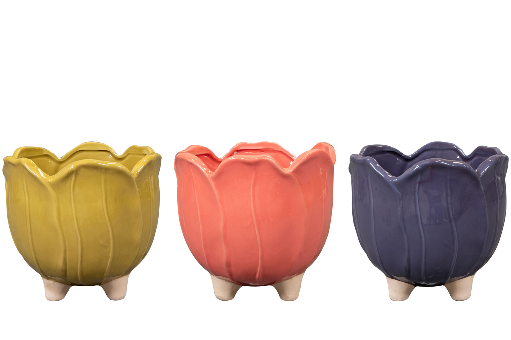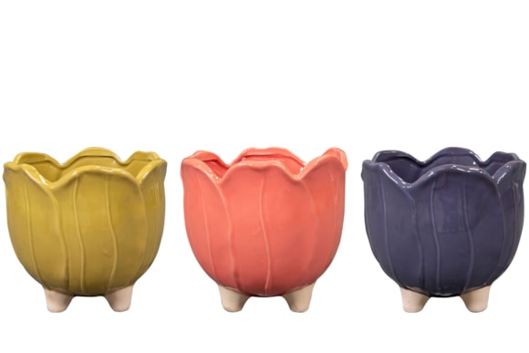 Tento veselý květináč ve tvaru tulipánu se jmenuje Desie a je součástí kolekce Glazed od TS Collection. Desie stojí na nožičkách, což mu dodává hravý vzhled. Má lesklou glazuru.