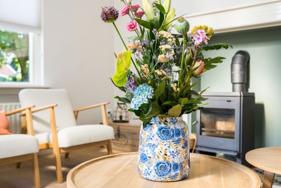 Modrá, bílá a nádech zlata charakterizují potisk Dutch Blue z kolekce umělkyně Lammie. Speciálně pro TS Collection vytváří výrazné potisky, z nichž každý má svůj vlastní příběh. Dutch Blue zdůrazňuje klid a strohost nizozemské přírody a kultury. Rozlehlé louky s divokými květinami, stébly a vodou. Nizozemsko působí uspořádaně a kontrolovaně, ale za tímto zdánlivým klidem se skrývá zápal a vášeň. Oslavte svou vášeň pro přírodu s tímto promyšleně navrženým Dutch Blue. Vyberte si z nabídky táců a misek na ovoce z mangového dřeva a krásných kovových květináčů s lesklou povrchovou úpravou. Vstupte do světa Lammie a objevte všechny motivy. Kvalita a exkluzivita jsou pilíři kolekce Designed by Lammie, řady plné barev a charakteru.