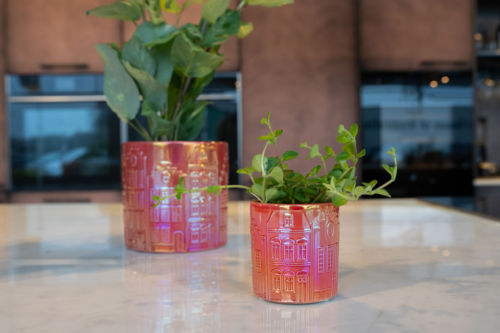 Venku už je soumrak, všichni sedí u stolu a vychutnávají si dezert, přičemž světlo z atmosférických lamp se odráží od vícebarevné glazury květináče Jille. Malý květináč Jille září jako středobod stolu. Vyrobená z vysoce kvalitní keramiky, Jille má krásný motiv kanálového domu s červenou glazurou. Jille je květináč z kolekce Glazed od TS Collection.