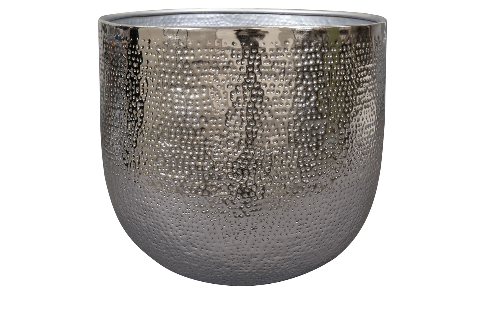 Tento luxusní pokojový květináč je vyroben z vysoce kvalitního kovu a leskne se, když na něj dopadne světlo. Pro živější efekt jsou do něj ručně vytloukány malé prohlubně.