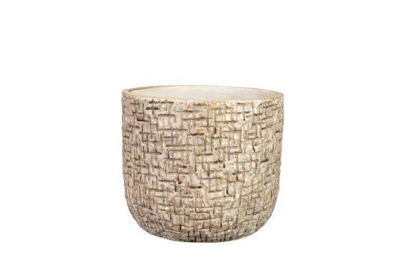 Cementové obaly na květináče mají specifický vzor a jemný zlatý lesk. Kombinace materiálu a designu vytváří luxusní a zároveň uklidňující atmosféru. Řada Maxim je k dispozici v různých velikostech a tvarech, v barevných variantách Shiny Earth a Shiny Sand.