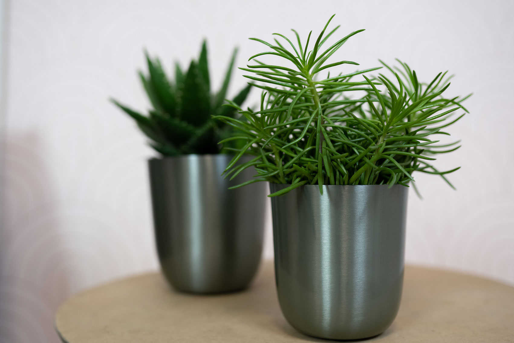 Série Mayk nabízí sedm velikostí stohovatelných obalů z krásného lesklého kovu ve třech barvách - olověná, měděná a zlatá. Nově i zelená a zářivé vlnění pestrých barev Vibes.