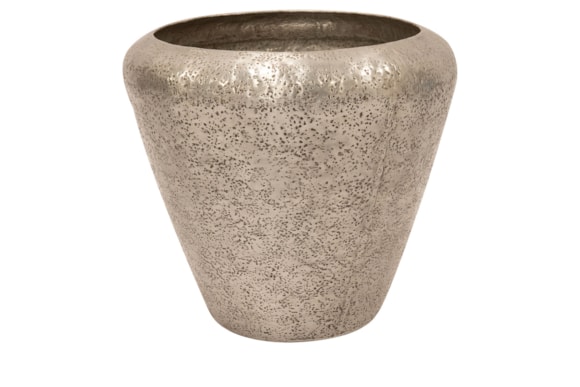 Tento unikátní květináč je vyroben z lehkého hliníku. Jemný vzor je ručně ražen pro elegantní vzhled. Dno je opatřeno praktickými plstěnými podložkami, které zabraňují poškození podlahy.