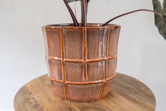 Tento stylový květináč z kolekce Glazed od TS Collection, nazvaný Noemi, dodá každému prostoru nádech elegance a osobitosti. Je ručně vyroben z keramiky a opatřen lesklou glazurou. Na vnější straně květináče je 3D vzor ve tvaru mřížky. Sytý odstín květináče dodává Noemi hřejivý dojem.