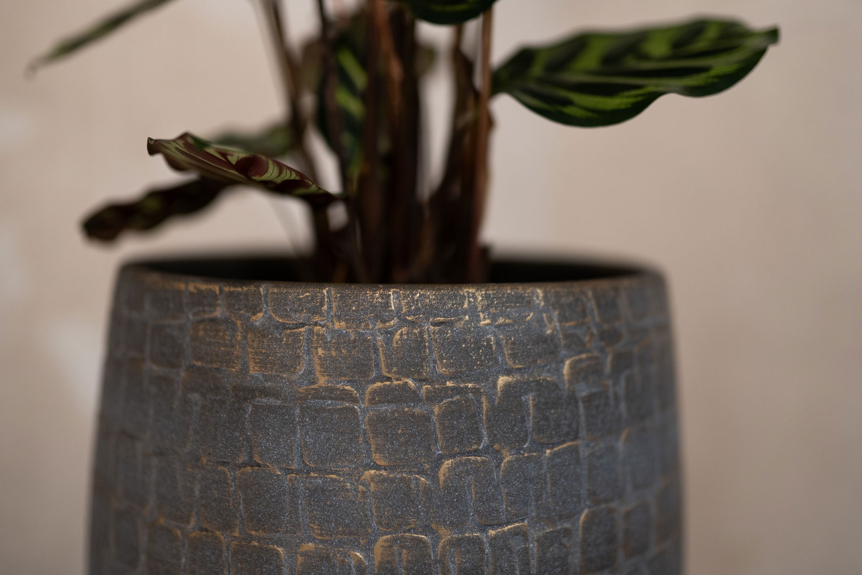 Renzo je stylový květináč s příběhem. Renzo je tradičně ručně vyroben na hrnčířském kruhu. Po dokončení tvaru květináče byl pomocí praktického nástroje nanesen vzor. Po vypálení hlíny byla aplikována krásná světle šedá barva s jemným zlatým leskem. Upozornění: řemeslná keramika má porézní strukturu, proto doporučujeme použít nepropustný vnitřní obal Lucas Pot Inlay. Tím zajistíte dlouhou životnost Renza a zabráníte vzniku kruhů na podlaze či parapetu.