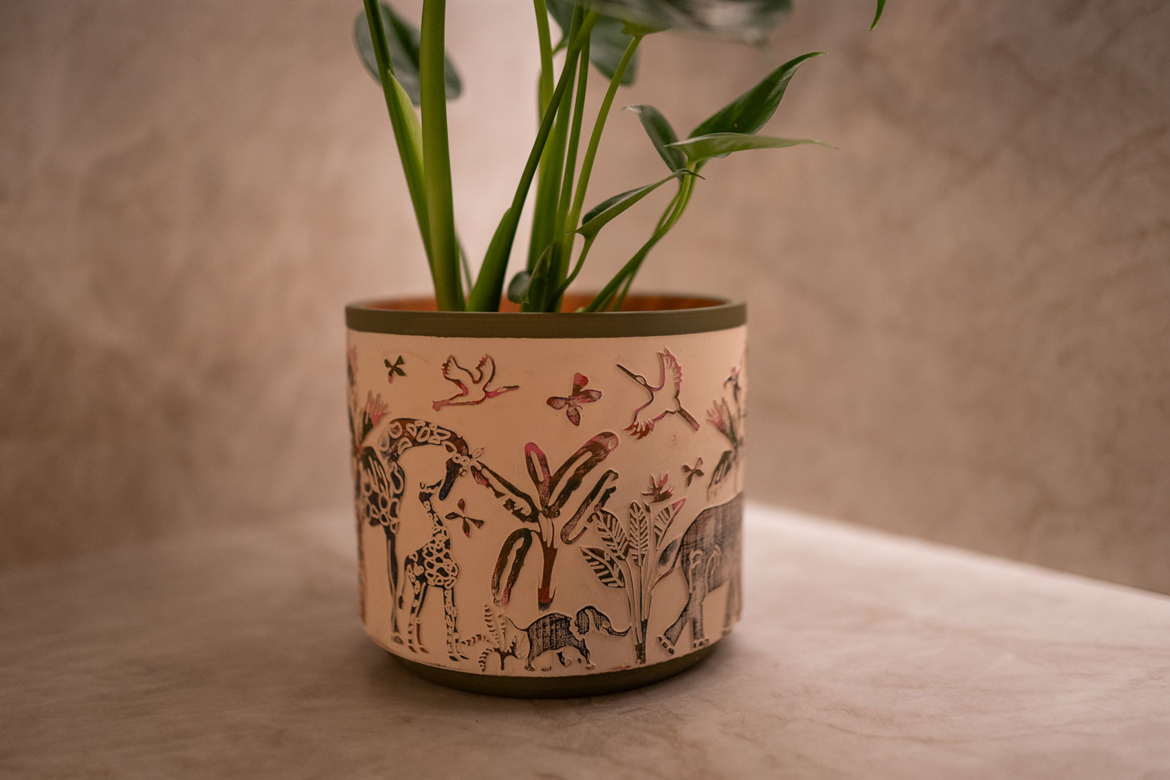 Vydejte se na nezapomenutelnou cestu skrze nádheru savanové flóry a fauny, kde příroda ožívá ve své plné kráse. Objevte energii rozlehlých plání i bujných divokých lesů. Tento květináč Safari Wildlife je vyroben z vysoce kvalitní keramiky a patří do řady Designed by Lammie od TS Collection. Květináč má 3D vzor, který je po vypálení hlíny ručně obtisknut barvou, čímž vzniká jedinečný motiv. Upozorňujeme, že neglazovaná keramika není vždy zcela nepropustná, proto se doporučuje použít vhodný vnitřní obal na květináč.