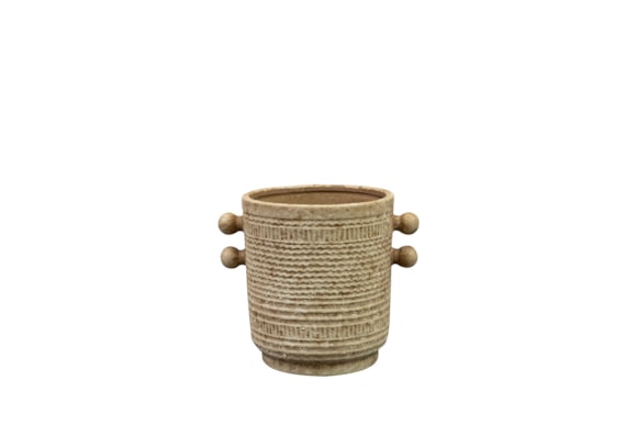 Sophia z kolekce Glazed od TS Collection je zároveň klasická i moderní. Je vyrobena z keramiky a zdobí ji jemný vzor. Po stranách květináče jsou ozdobné kuličky. Spodní část je užší, takže to vypadá, jako by Sophia stála na malém stupínku. Její klidná barva umožňuje snadné kombinování s jakoukoli rostlinou.