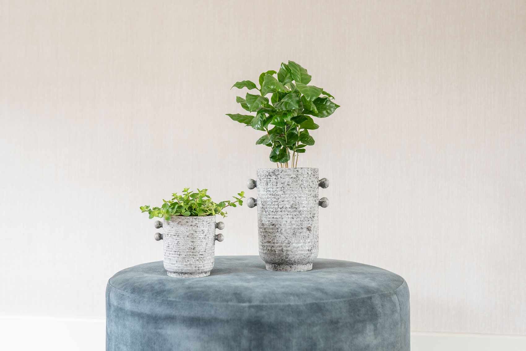 Sophia z kolekce Glazed od TS Collection je zároveň klasická i moderní. Je vyrobena z keramiky a zdobí ji jemný vzor. Po stranách květináče jsou ozdobné kuličky. Spodní část je užší, takže to vypadá, jako by Sophia stála na malém stupínku. Její klidná barva umožňuje snadné kombinování s jakoukoli rostlinou.