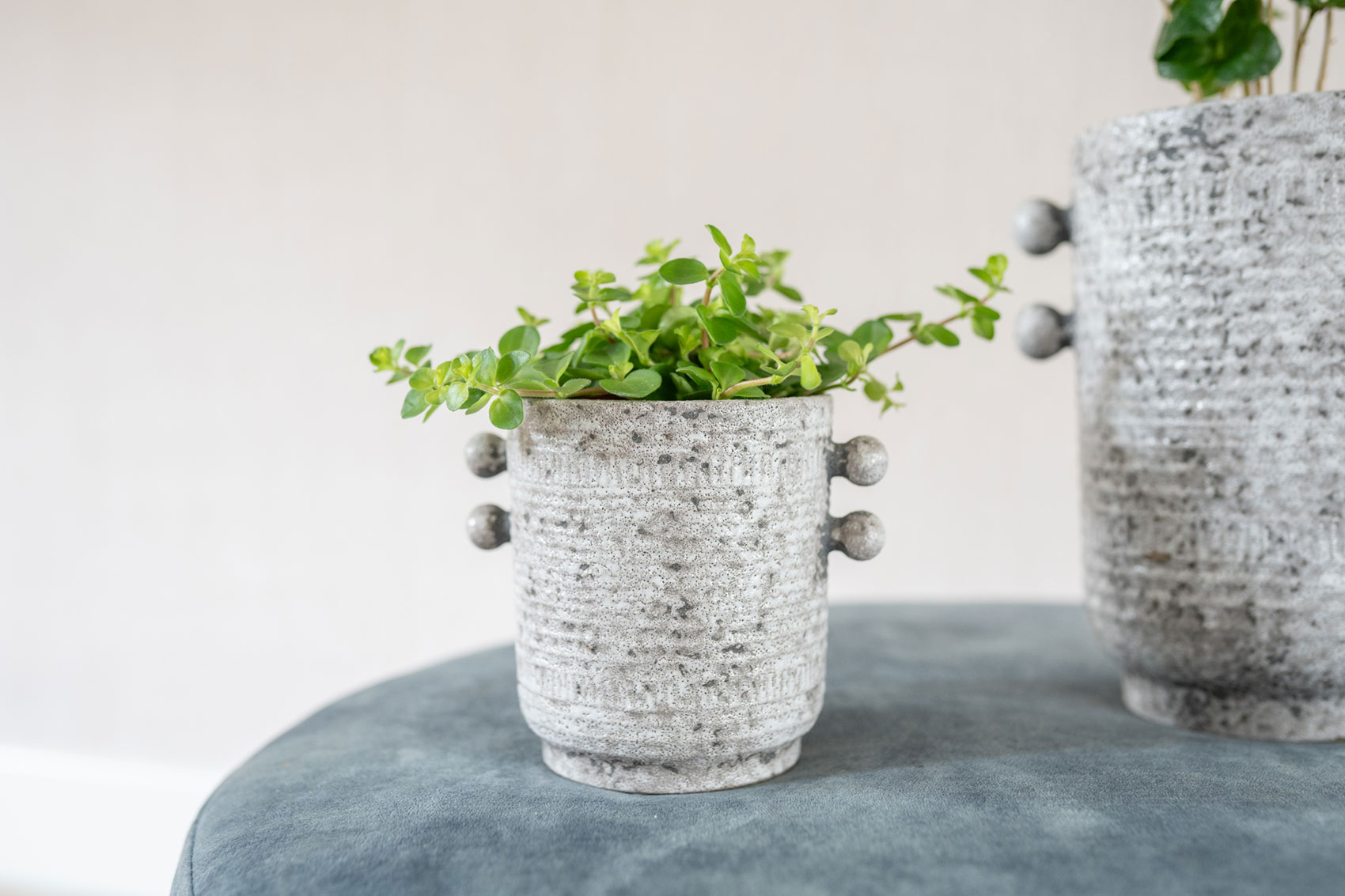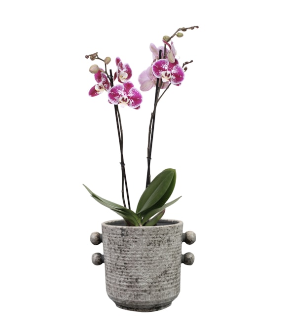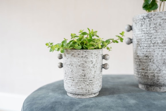 Sophia z kolekce Glazed od TS Collection je zároveň klasická i moderní. Je vyrobena z keramiky a zdobí ji jemný vzor. Po stranách květináče jsou ozdobné kuličky. Spodní část je užší, takže to vypadá, jako by Sophia stála na malém stupínku. Její klidná barva umožňuje snadné kombinování s jakoukoli rostlinou.