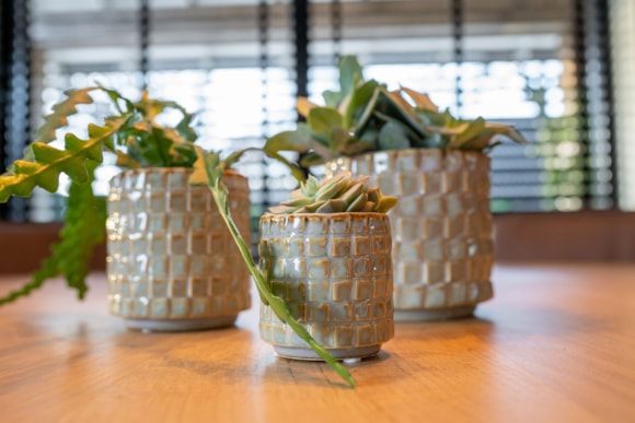 Květináč s přirozeným a zároveň grafickým vzhledem – možná to zní jako protiklad, ale právě tato kombinace dělá Stian tak přitažlivým. Grafická bloková struktura na povrchu květináče má organický tvar a působí řemeslným dojmem. Spojení uspořádanosti a ležérnosti z něj činí jedinečný doplněk do interiéru. Stian má navíc neodolatelnou lesklou vrstvu v příjemných teplých přírodních tónech. Na výběr je z barev Moss Green a Soft Jade. Stian je květináč značky TS Collection – nizozemské značky, která vytváří nádherné květináče pro zelený a útulný domov.