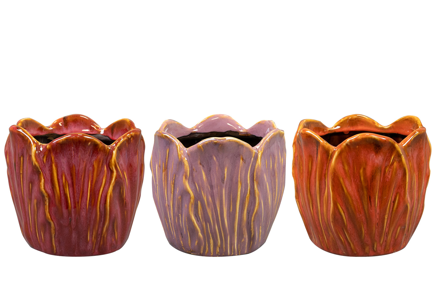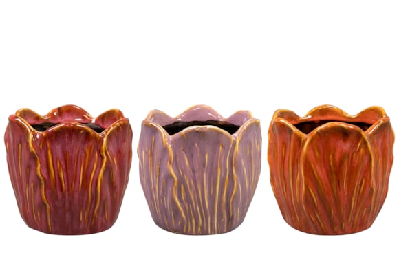 Tento veselý keramický květináč Tulip od značky TS Collection zútulní každý interiér! Roztomilý květináč ve tvaru tulipánového kalichu má lesklou glazuru, díky které jeho tvar ještě více vynikne, když na něj dopadá sluneční světlo. Vnitřní strany okvětních lístků mají stejnou barvu jako vnější horní část, což zajišťuje elegantní zakončení. Tulip je k dispozici ve třech romantických barvách – lávové, třešňové a šeříkové.