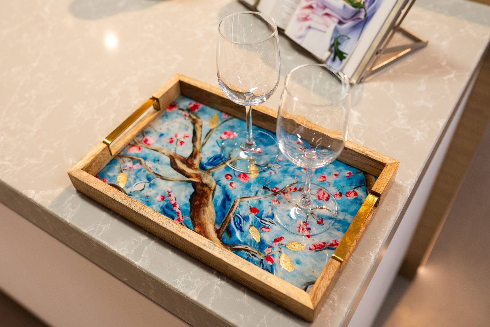 Luxusní obaly a dekorace z nové řady Designed by Rick Triest. Potisk Blossom blue je inspirován Zlatým věkem.