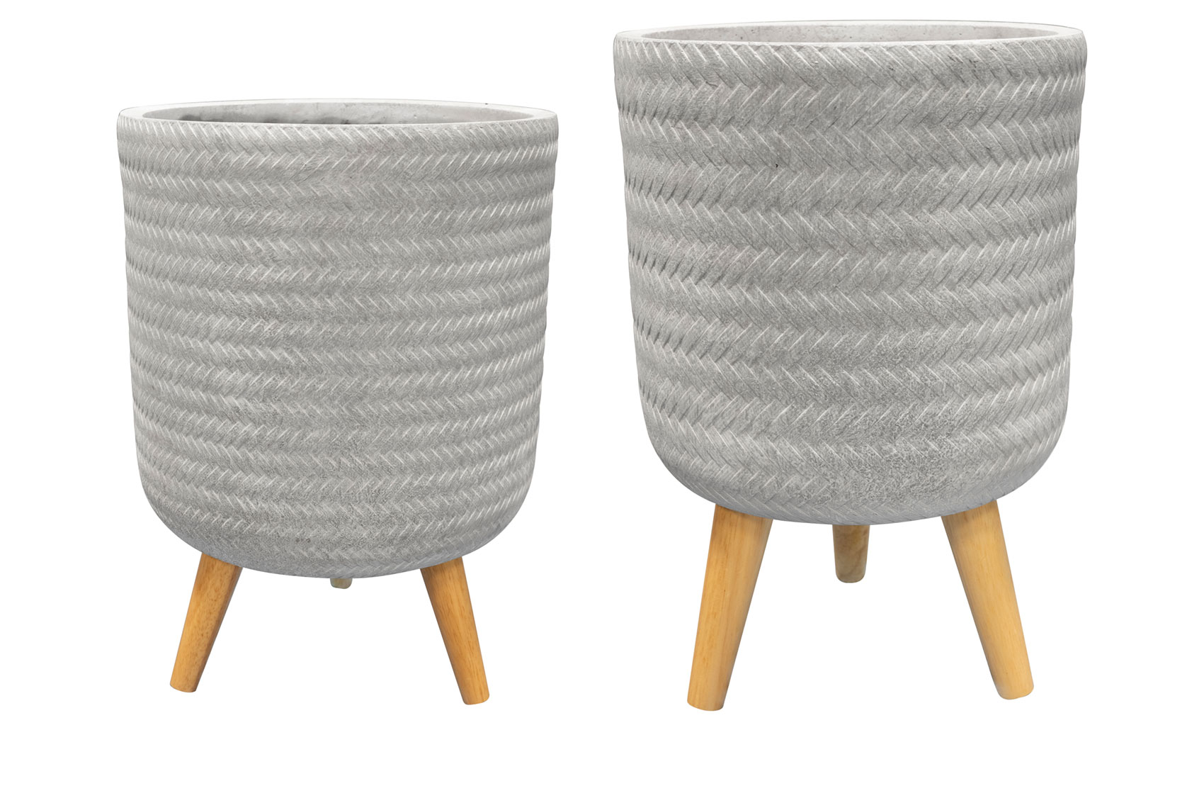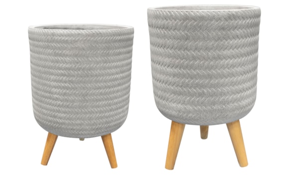 Fenne jsou obaly na květiny z kvalitní hlíny vyztužené vlákny, mají dřevěné nohy a moderní matný povrch. Textura košíkové vazby dodává přírodní atmosféru. Na výběr v barvách černé, šedé a mátové. Kombinací obou velikostí v sadě můžete vytvořit nádhernou rostlinnou krajinu na podstavci.