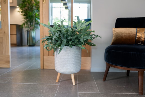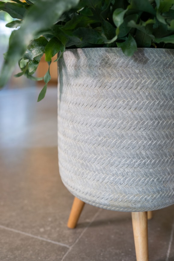 Objevte úchvatný květináč Fenne z TS Collection, vyrobený z fiberclay a ručně zpracovaný. Tento stylový květináč má dřevěné nohy a moderní matnou povrchovou úpravu. Textura připomínající pletený koš dodává hravý a přirozený charakter. Květináč Fenne vyzařuje sílu a atmosféru a nabízí kvalitu pro použití v interiéru. Díky výběru přírodních barev, jako jsou černá, šedá a mátová, poskytuje krásné možnosti, jak obohatit váš interiér. Dostupný ve dvou velikostech pro velké rostliny, umožňuje vytvořit nádhernou rostlinnou scenérii na podstavci. Nechte své rostliny vyniknout v květináči Fenne a užijte si útulné a zelené prostředí.