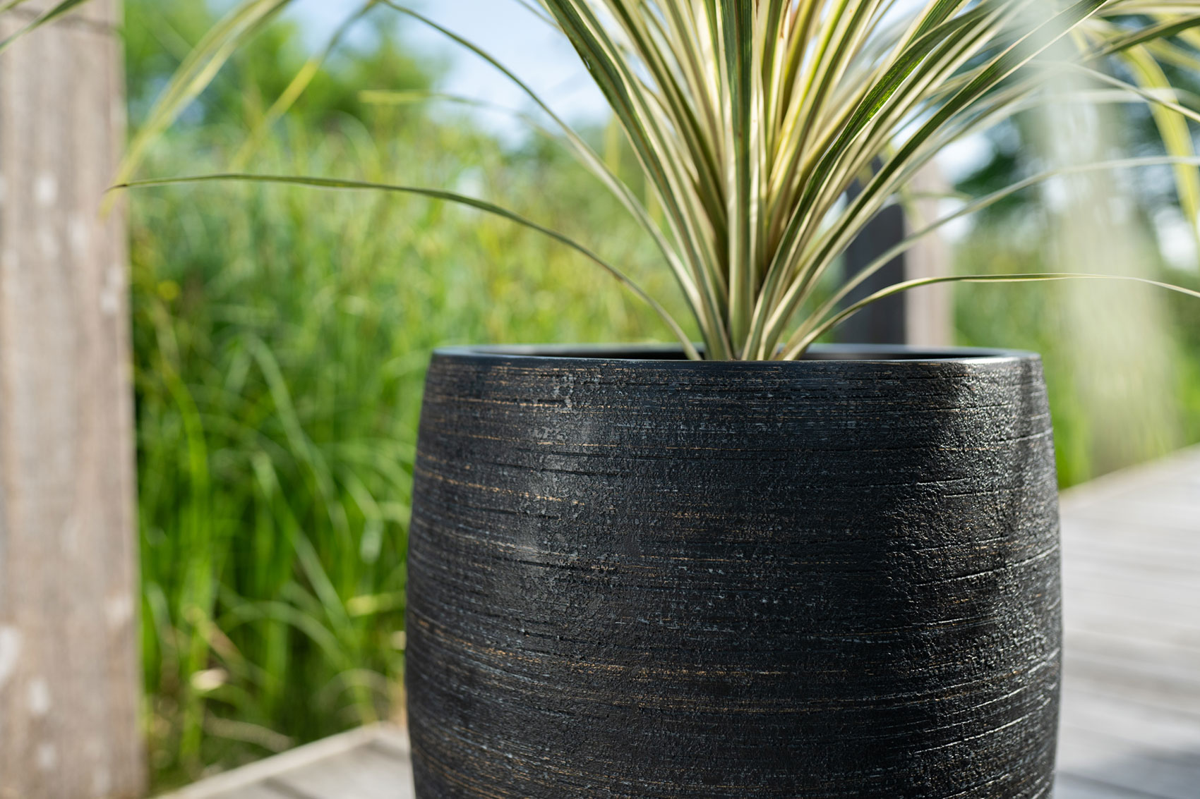 Tento nádherný luxusní venkovní květináč od značky TS Collection se jmenuje Ciana. Ciana patří do řady Synthetics a je vyrobena z pevné směsi plastu a kamene. Díky tomu je nejen velmi odolná, ale také mimořádně lehká, takže se snadno přenáší. Ciana má elegantní matně černý vzhled s jemným bronzovým nádechem.