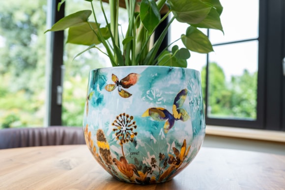 Luxusní obaly na květiny a vybavení domácnosti mají barevné potisky z dílny Designed by Lammie vytvořené speciálně pro kolekce TS. Pro zajištění exkluzivity je vydávaná v limitovaných vydáních. V této řadě nabízíme obaly na květináče, vázy, podnosy s emailovým povrchem, misky z mangového dřeva a další doplňky.