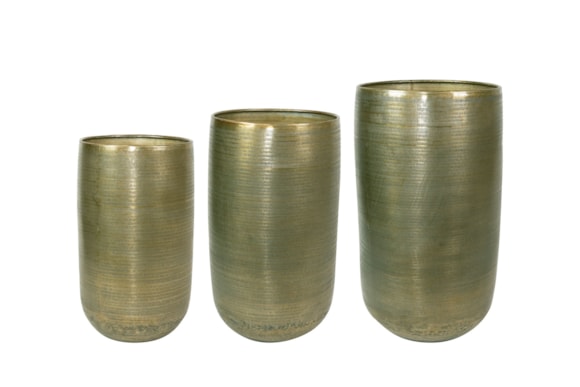 Kolekce Rowen je luxusní sada hliníkových obalů a váz s jemnou ručně nanášenou strukturou. Série je k dispozici v různých tvarech, od misek a mís, přes klasické obaly až po vázy do výšky 90cm. Na výběr jsou různé odstíny kovu. Jsou velmi lehké, dokonce lehčí než jiné kovy. Hliník má navíc nerezovou vrchní vrstvu. Ale pozor, hliník podléhá určitým povětrnostním podmínkám. Je třeba vybrat vhodné umístění, ideální jsou na verandu nebo do zimních zahrad.