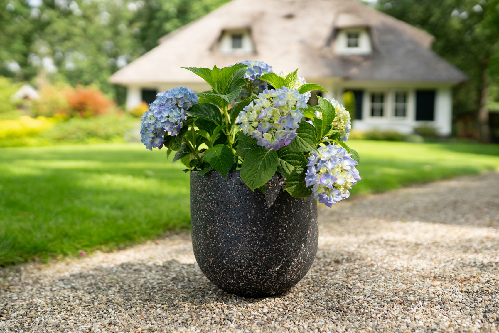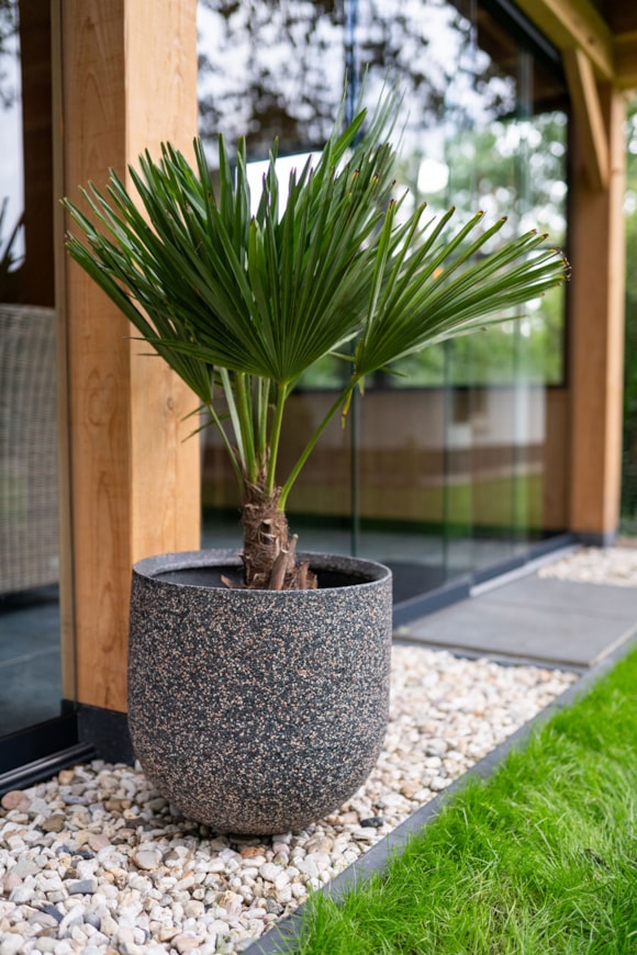 Ravi je venkovní sada vyrobená ze speciální směsi polystone. Na pohled vypadá robustně, tento syntetický materiál je velmi pevný a relativně lehký. Povrch je vyložený oblázky ve stylu terazzo podlahy. Tímto provedením se Ravi prolíná jako přírodní prvek do venkovního prostředí terasy a zahrady. V této krásné sérii od TS Collection jsou k dispozici sady různých velikostí květináčů, váz a mís. To umožňuje kombinovat vybavení stolu, terasy, přístřešku a zahrady. Velikosti se pohybují od 21 centimetrů na výšku u nejmenšího květináče až po 68 centimetrů na výšku u největší vázy.