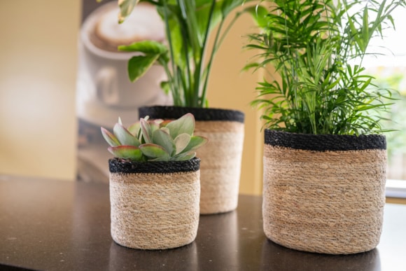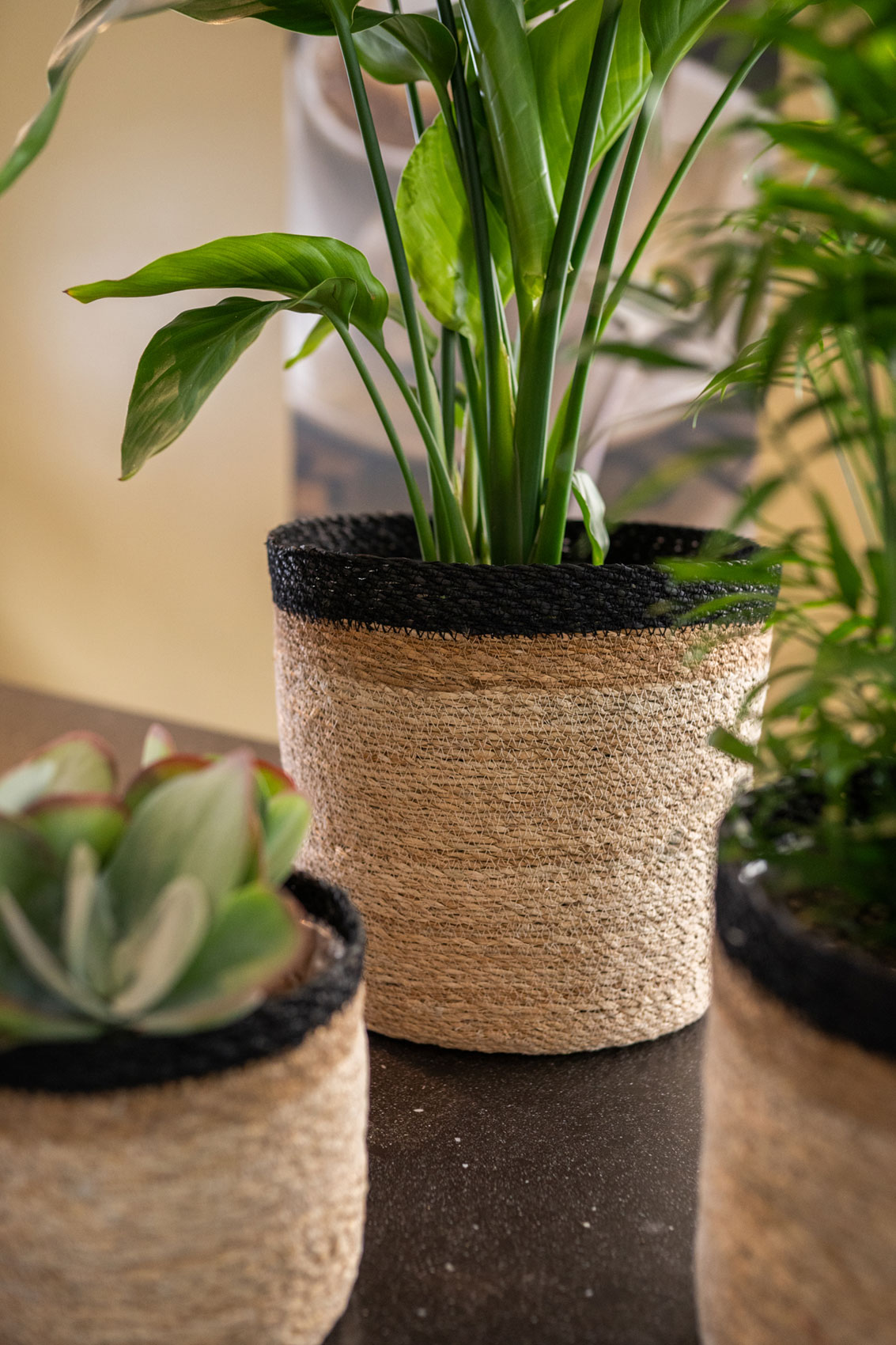 Série Stef z kolekce TS Naturals dokonale zapadá do zvyšující se poptávky po přírodních a udržitelných interiérových produktech. Obaly jsou ručně pletené z mořské trávy. Výrobek má výztužná drát a vnitřek je pokryt plastovou vložkou, abyste je mohli použít na živé zalévané květiny.