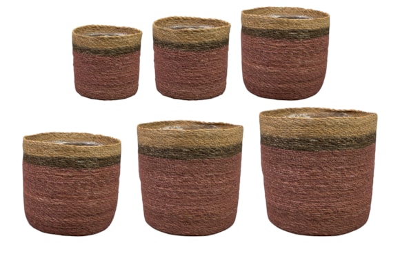 Série Stef z kolekce TS Naturals dokonale zapadá do zvyšující se poptávky po přírodních a udržitelných interiérových produktech. Obaly jsou ručně pletené z mořské trávy. Výrobek má výztužná drát a vnitřek je pokryt plastovou vložkou, abyste je mohli použít na živé zalévané květiny.