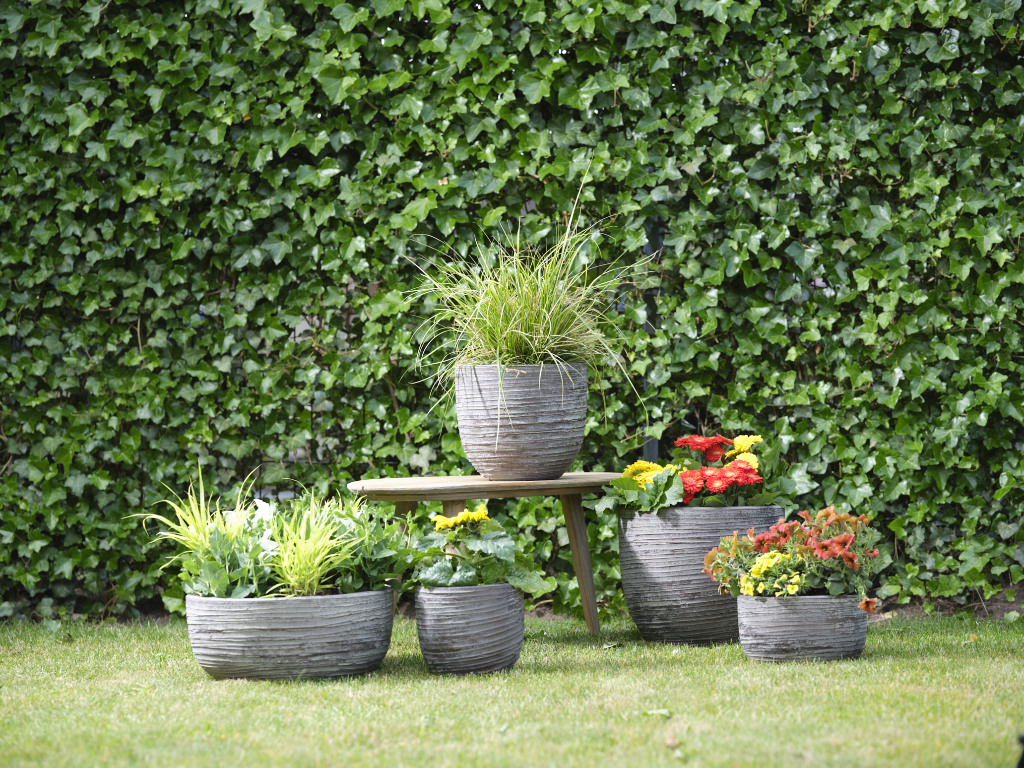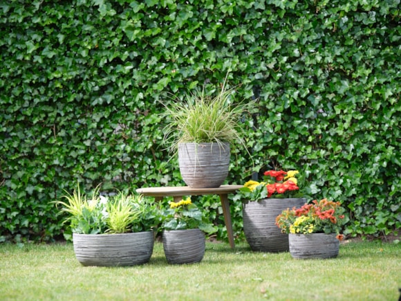 Květináče Boet jsou ručně vyrobené ze pevného cementu. Mají kulatý tvar a jemně drážkovanou strukturu, jsou dostupné v několika barevných variantách. Tahle klasika zútulní každou zahradu.