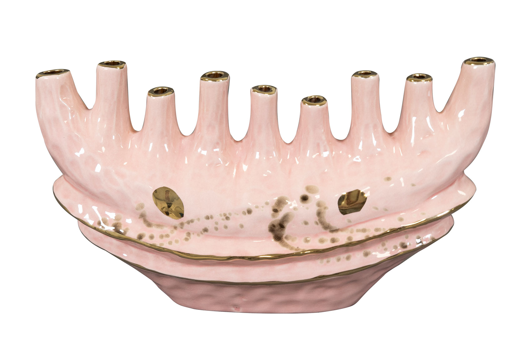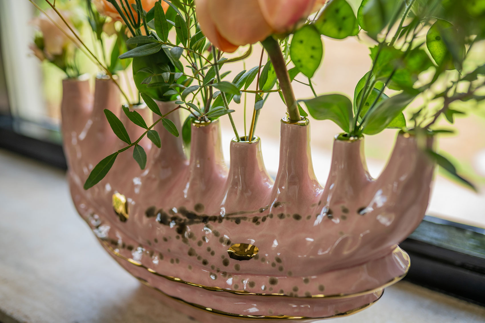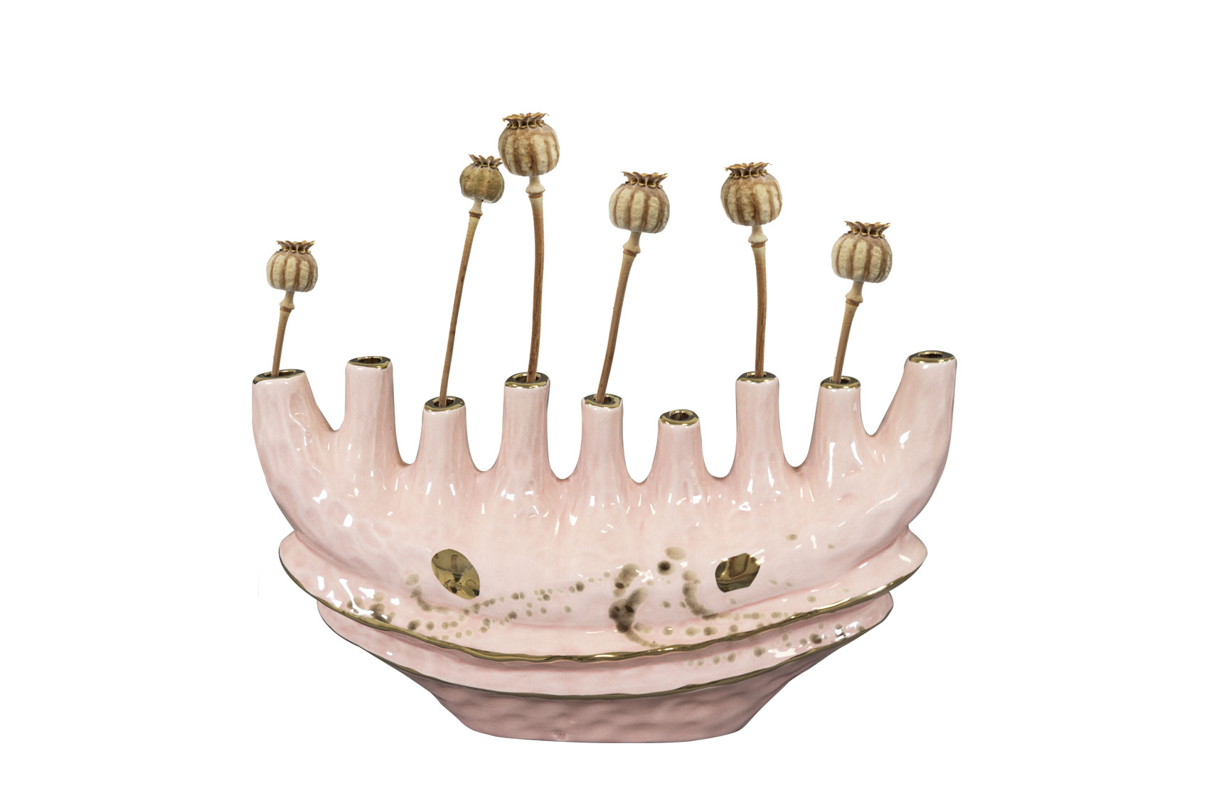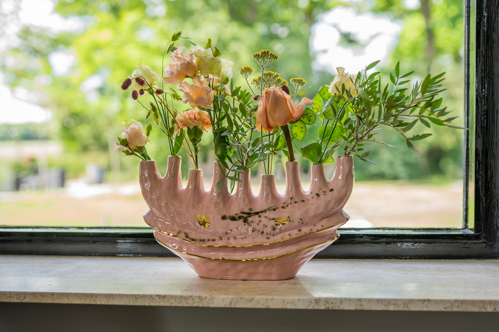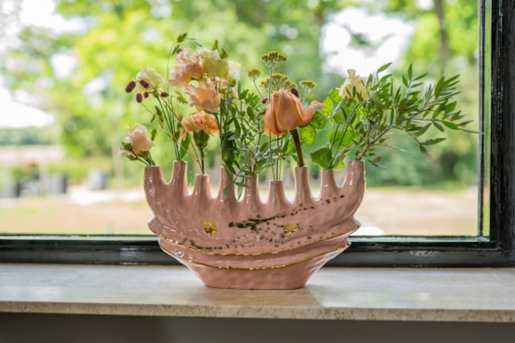 Alfie je skutečný poutač díky své sladké barvě v kombinaci se zlatou povrchovou úpravou. Alfie je ručně vyroben z keramiky a má lesklou glazuru. Alfie je k dispozici v různých modelech a velikostech, například jako váza s několika otvory nebo květináč s vysokým hrdlem.