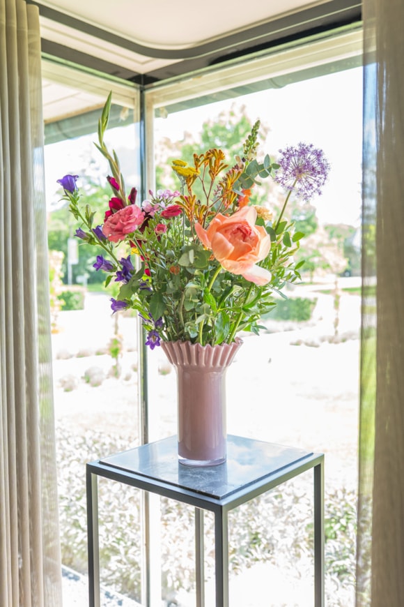 Dolly je stylová váza z kolekce TS. Má rozšířený vějířovitý krk, takže květiny lze ve váze krásně aranžovat.
