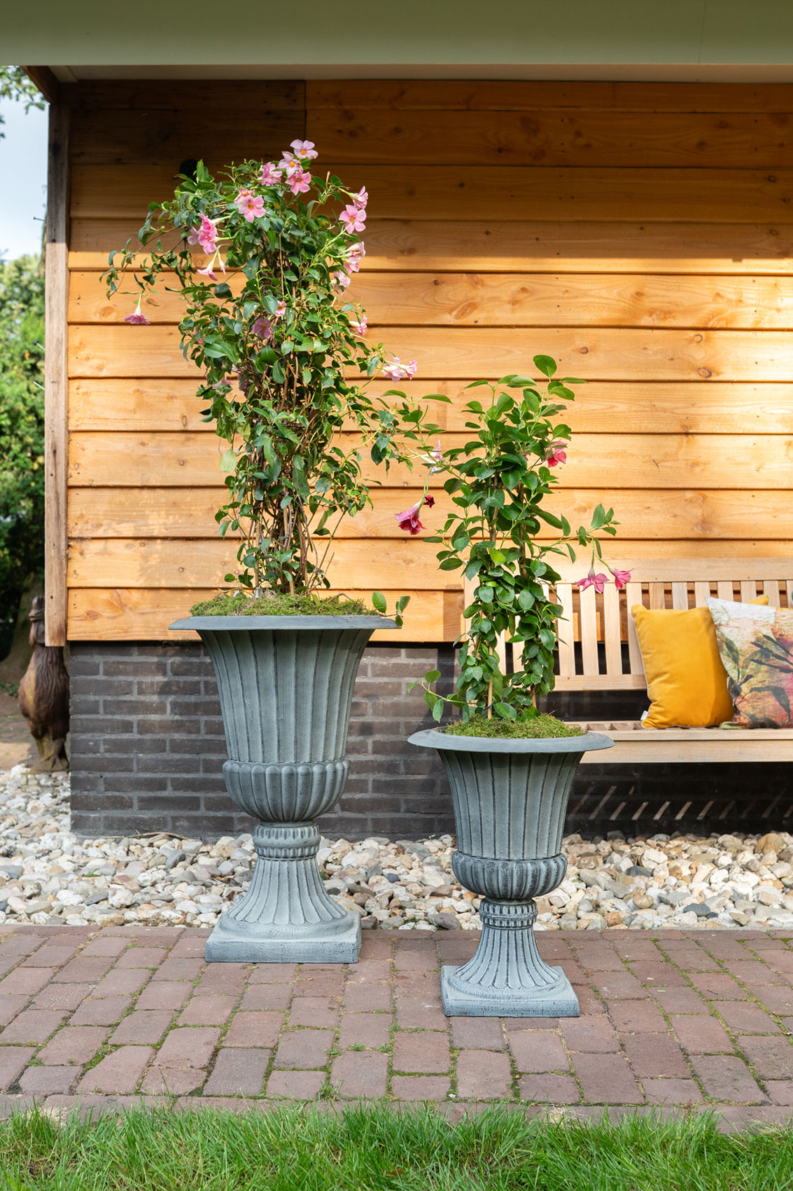 Nezaměnitelný styl Louvre s klasickým designem nyní v moderním materiálu. Vyrobeno z recyklovaného plastu a samotný produkt je plně recyklovatelný. Venkovní vázy a pítka jsou pevná a lehká, odolná povětrnostním podmínkám.