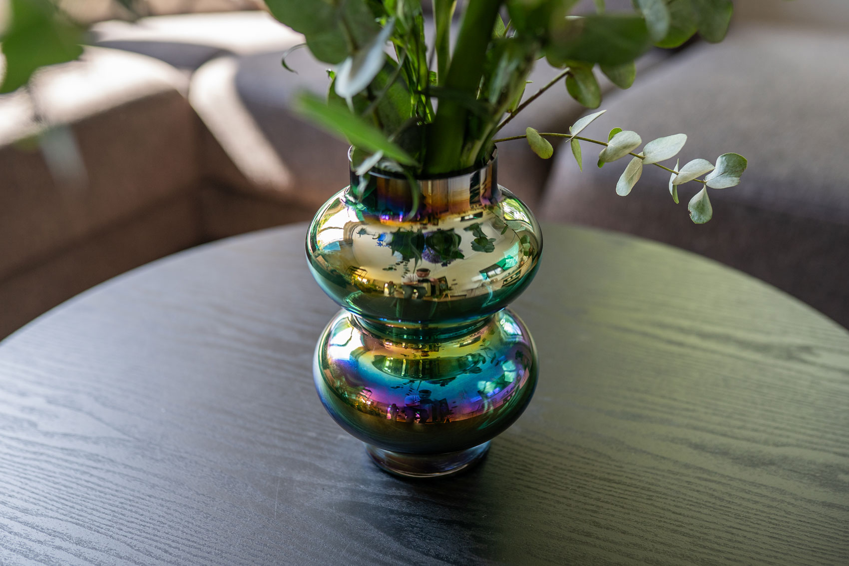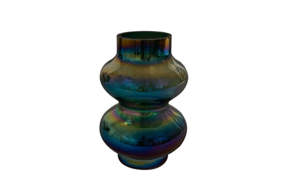 Nika je skleněná váza s holografickou glazurou. Když na ni dopadne světlo, ukradne všem pozornost.
