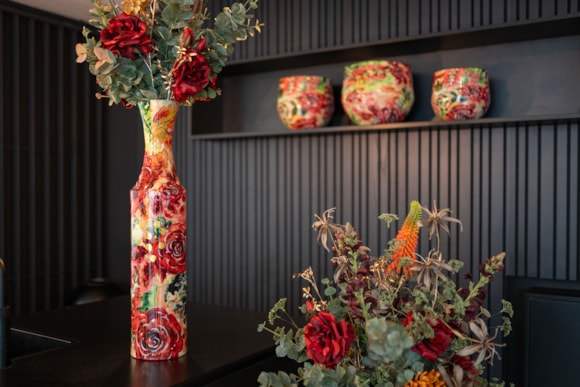 Luxusní obaly na květiny a vybavení domácnosti mají barevné potisky z dílny Designed by Lammie vytvořené speciálně pro kolekce TS. Pro zajištění exkluzivity je vydávaná v limitovaných vydáních. V této řadě nabízíme obaly na květináče, vázy, podnosy s emailovým povrchem, misky z mangového dřeva a další doplňky.