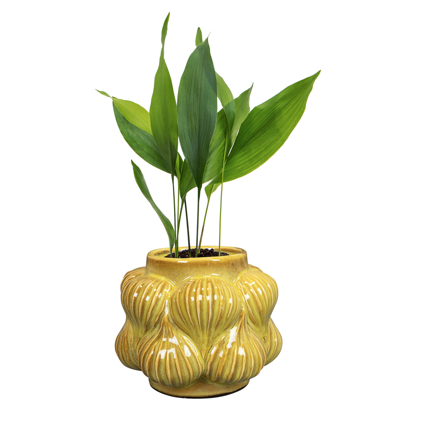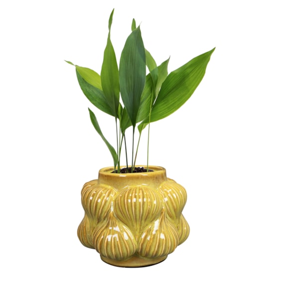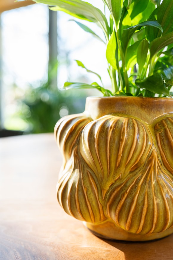 Sanah jsou nejen funkčními obaly na květináče, ale uměleckými předměty samy o sobě. Díky neobvyklým tvarům, ruční výrobě a řemeslné glazuře je každý kus jedinečný. K dispozici ve dvou barvách – hořčičné a petrolejové.