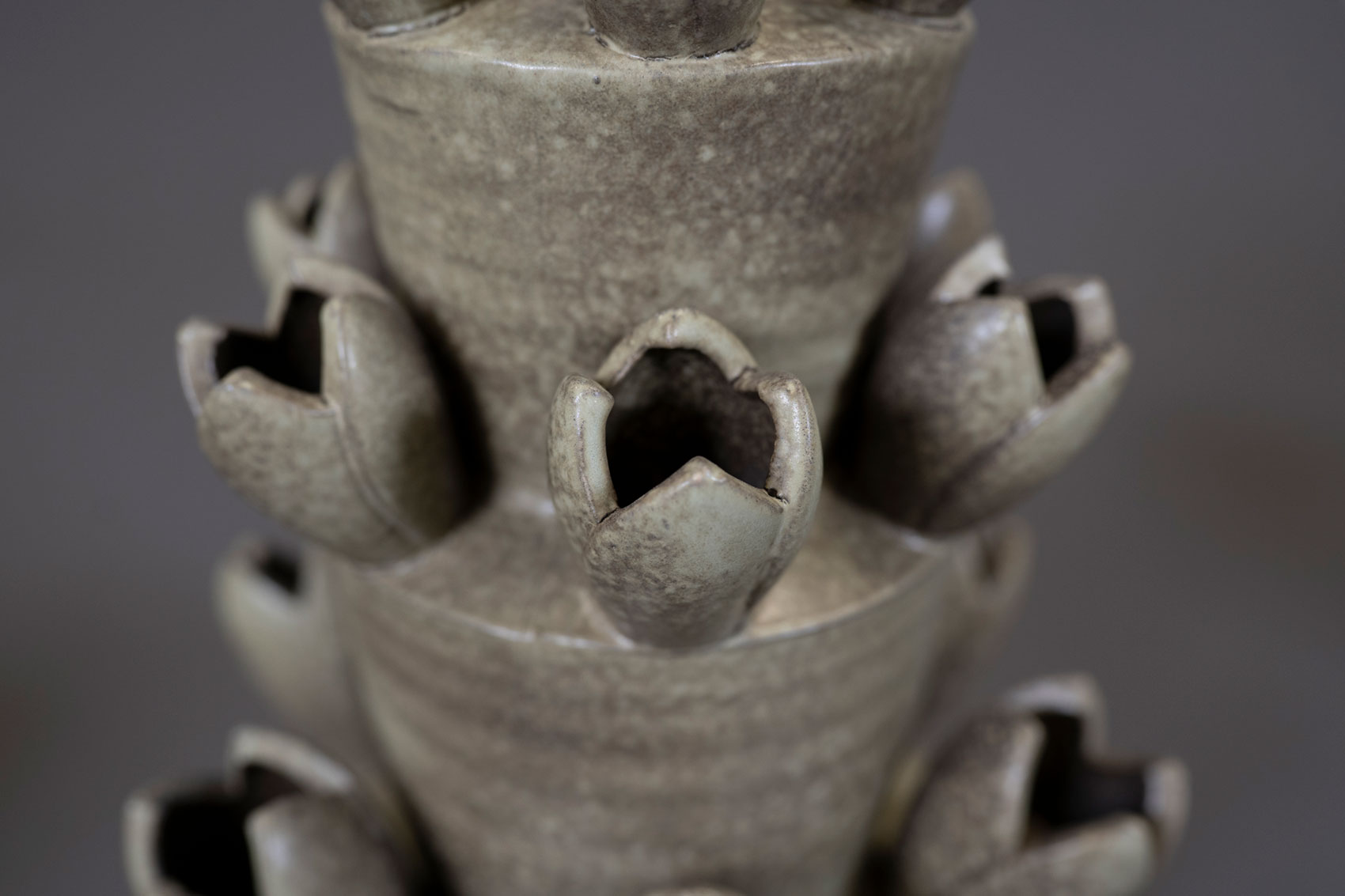Tula je ručně vyrobená z vysoce kvalitní keramiky a má tvar tulipánu. Má matný povrch s jemně drsnou texturou.